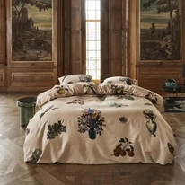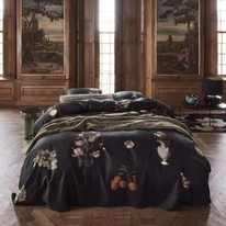 Verleihen Sie Ihrem Schlafzimmer eine künstlerische Note mit dieser exquisiten Bettwäsche von Essenza. Inspiriert von den Meisterwerken des Mauritshuis-Museums, präsentiert sie eine Collage aus üppigen Blumensträußen und eleganten Fruchtelementen. Die verspielte Anordnung dieser Details schafft ein modernes, stilvolles Design, das jedem Raum eine frische Ausstrahlung verleiht. Der hochwertige Baumwollsatin sorgt für ein luxuriöses Schlafgefühl und ist zudem pflegeleicht, da er bei bis zu 60 ?C waschbar und trocknergeeignet ist. Dank der Wendefunktion können Sie zwischen einem kunstvollen und einem schlichten, einfarbigen Look wählen. Ein praktischer Reißverschluss und ein passender Kissenbezug runden das Set ab.